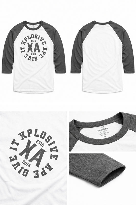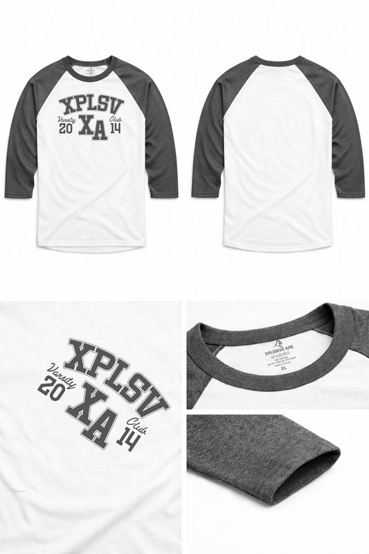 XAPE Varsity Prime Raglan 3/4 Sleeve Tee - White/Dark Heather
