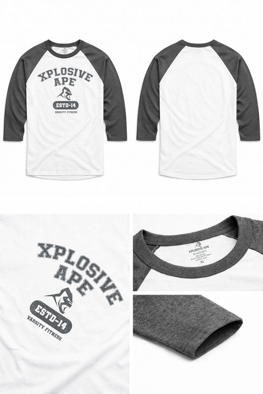 XAPE Varsity Fitness Raglan 3/4 Sleeve Tee - White/Dark Heather