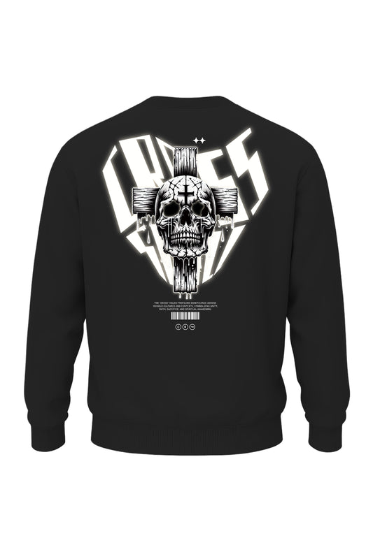 US Gothic Cross Skull Sweatshirt - Black