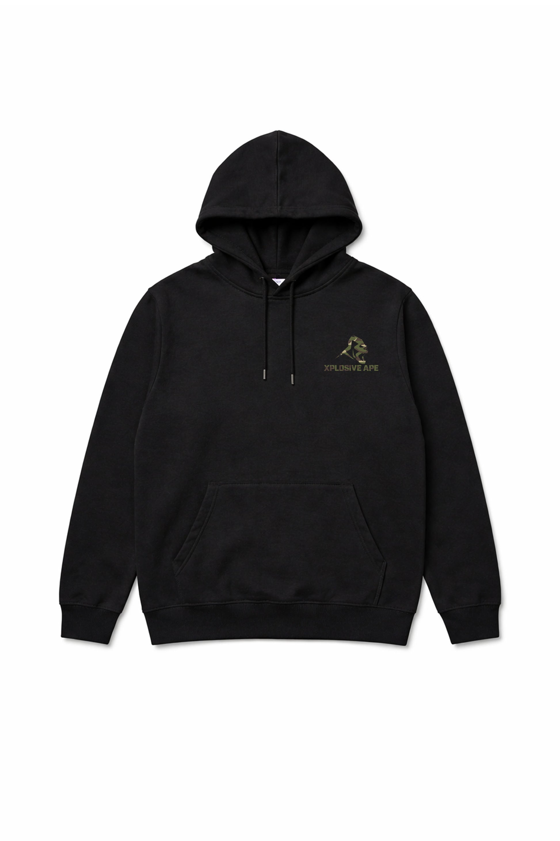Crafted for comfort and versatility, the Black hoodie is designed to support your toughest workouts and seamlessly transition into your casual outings.Featuring a bold camo Xplosive Ape logo on the chest, it adds a touch of statement style to your everyday essentials. Its mid-weight, soft fabric offers the perfect balance of warmth and style, whether you're layering up or unwinding post-workout.